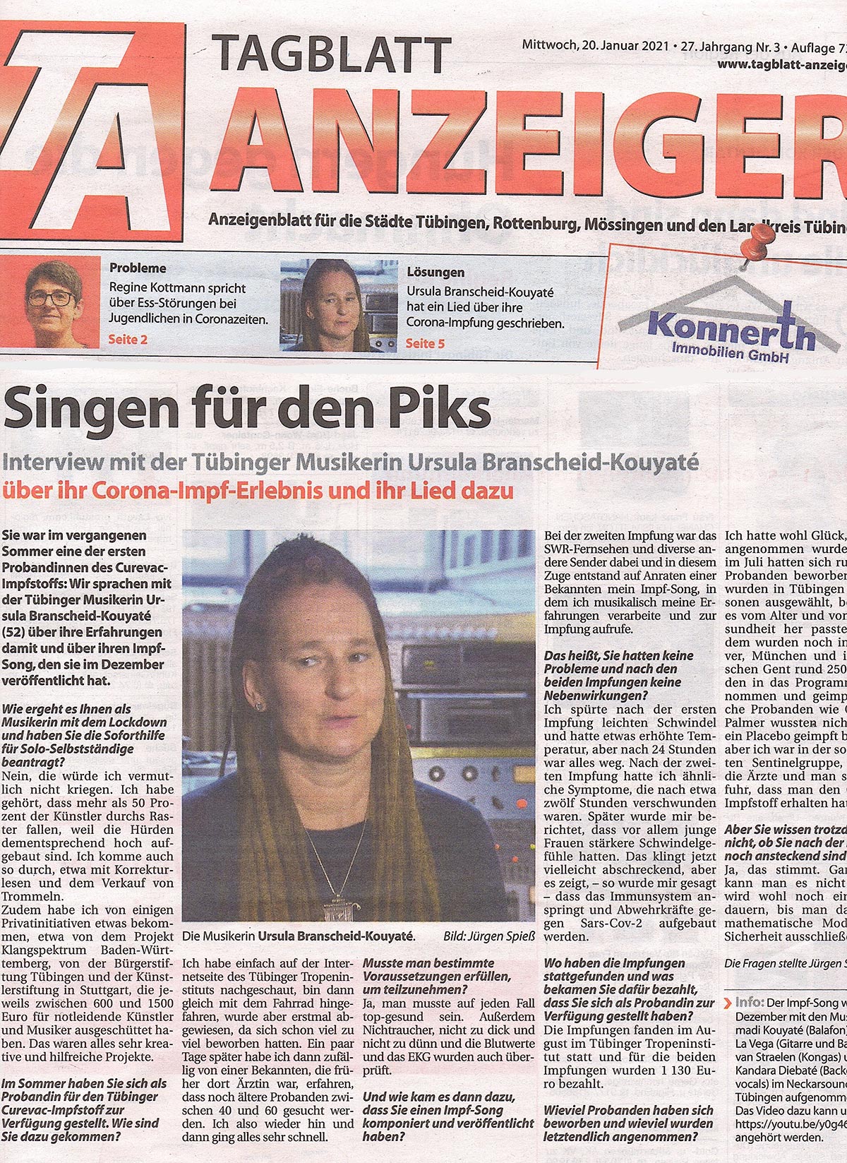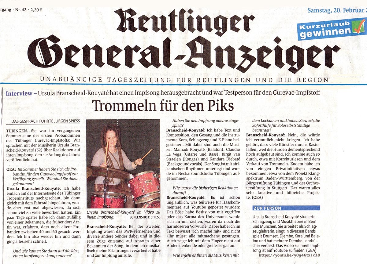 Im November / Dezember 2020 Komposition und Aufnahme der "Impf-Songs". Anschließend wieder Berichte bei SWR aktuell und in Zeitungen